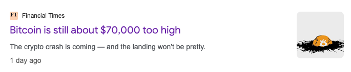 Heck, it even got the Financial Times to write yet another doomer piece on bitcoin’s value: