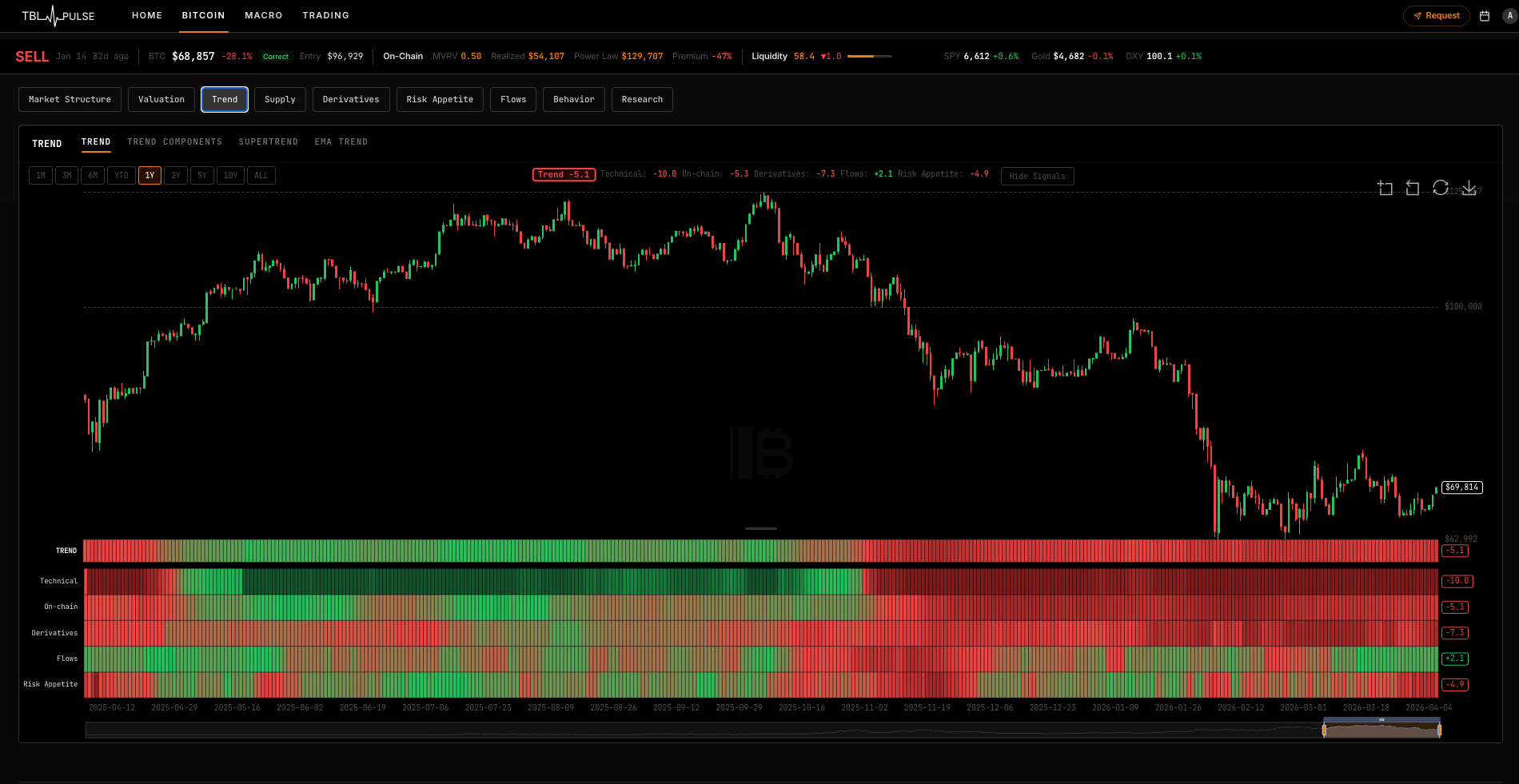Dynamic bitcoin charts, which include options, on-chain metrics, and more
