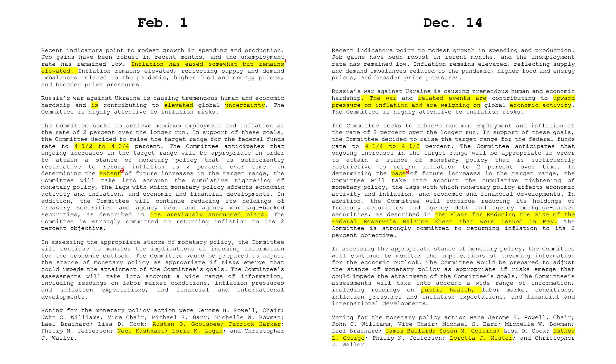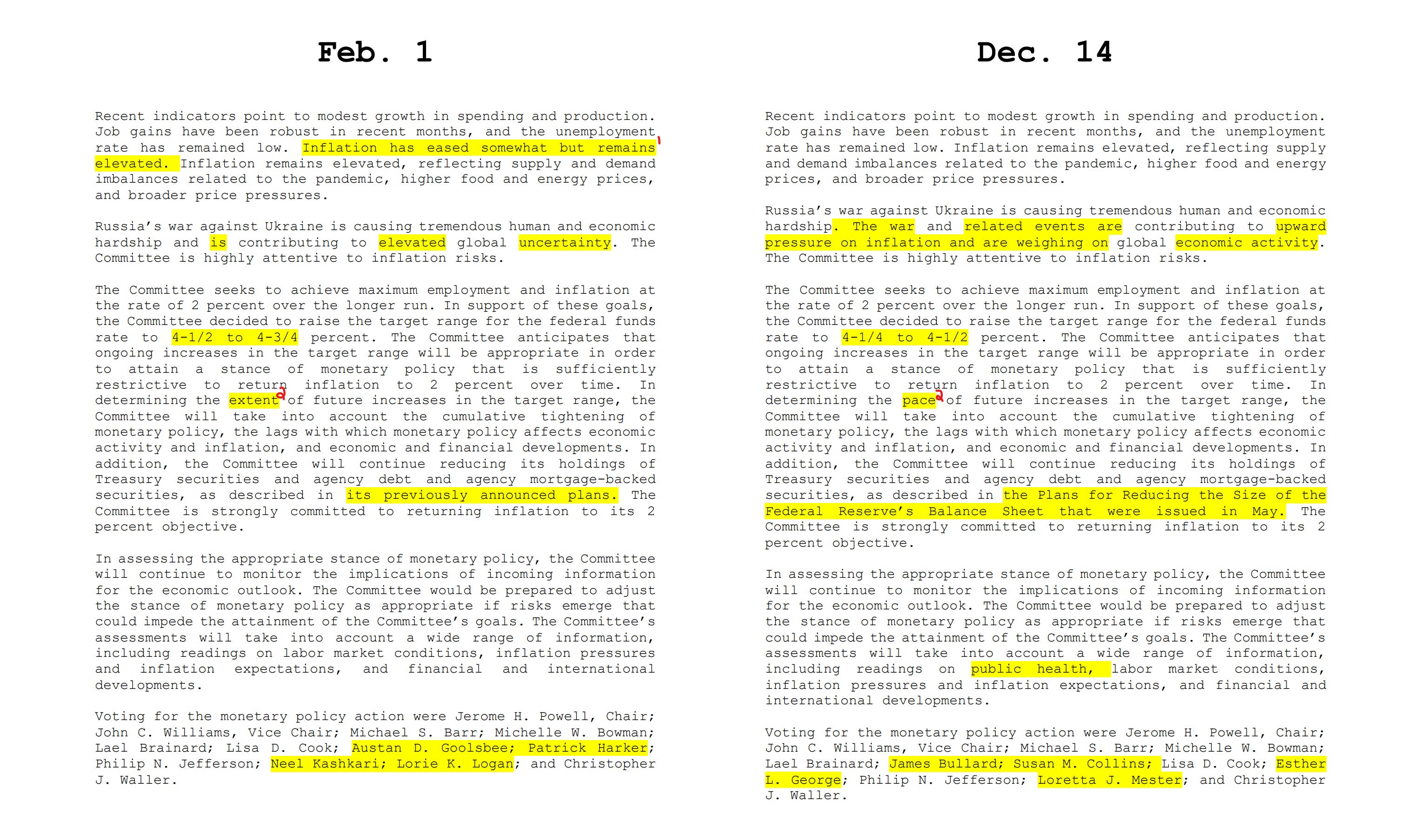 Allow us to summarize the changes made to February’s FOMC statement released today and the last one from December 14th—two of which are noteworthy for forward guidance: